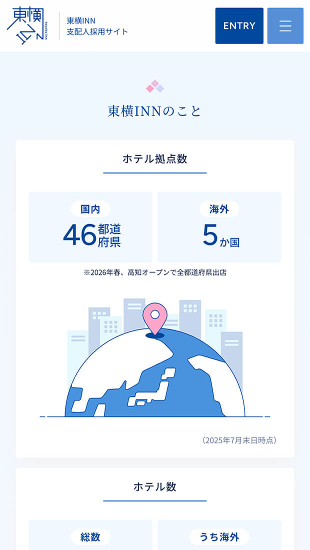 国内46都道府県、海外5カ国でホテル事業を展開する株式会社東横イン様の採用ブランディングを支援しました。