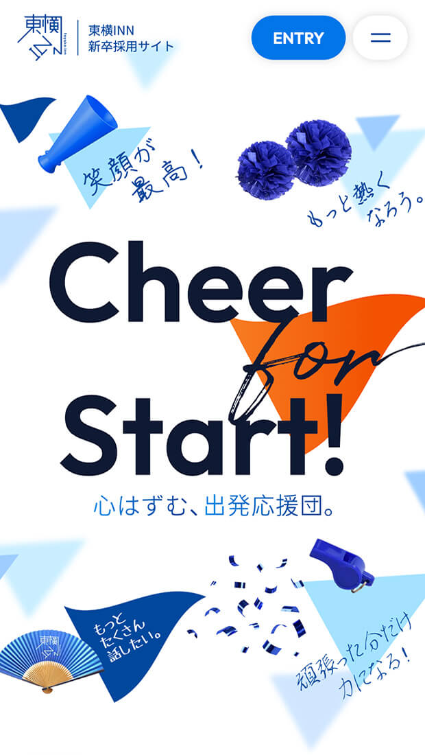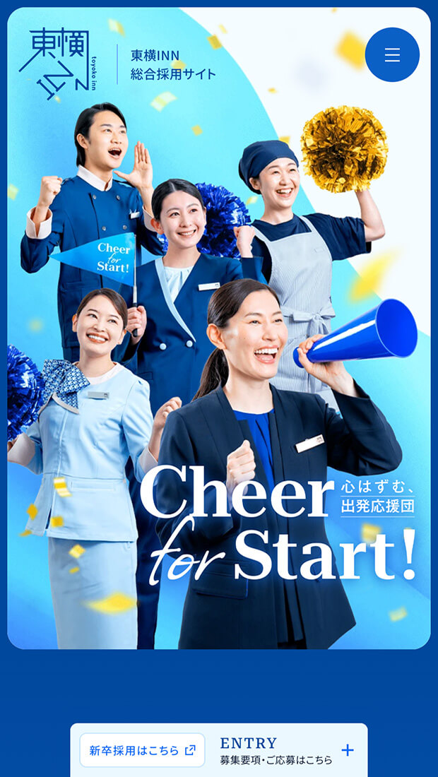 総合採用サイトでは「Cheer for Start! 心はずむ、出発応援団」をコアコンセプトに、ホテルを支える全スタッフを「ひとつのチーム」として捉え直し、ブランド体験を再編集。