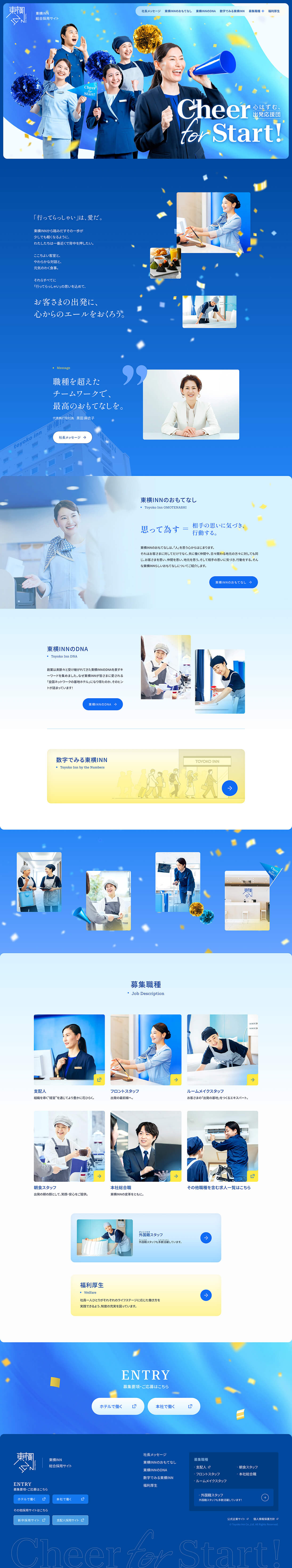 総合採用サイトでは「Cheer for Start! 心はずむ、出発応援団」をコアコンセプトに、ホテルを支える全スタッフを「ひとつのチーム」として捉え直し、ブランド体験を再編集。